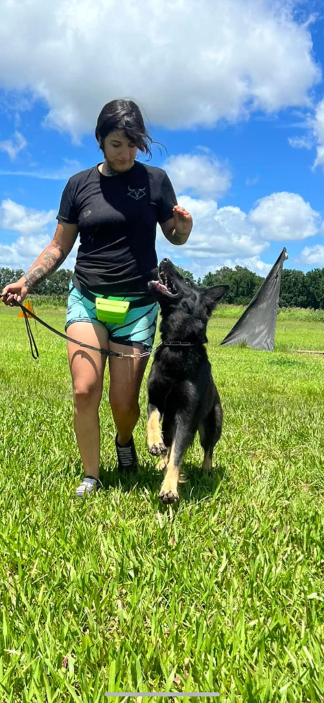 Novellas main mission in life is to snuggle. She is low/medium drive. She loves people. She always wants to be the center of attention. She is extremely handler oriented. Medium food and ball drive. She has produced some awesome dogs.