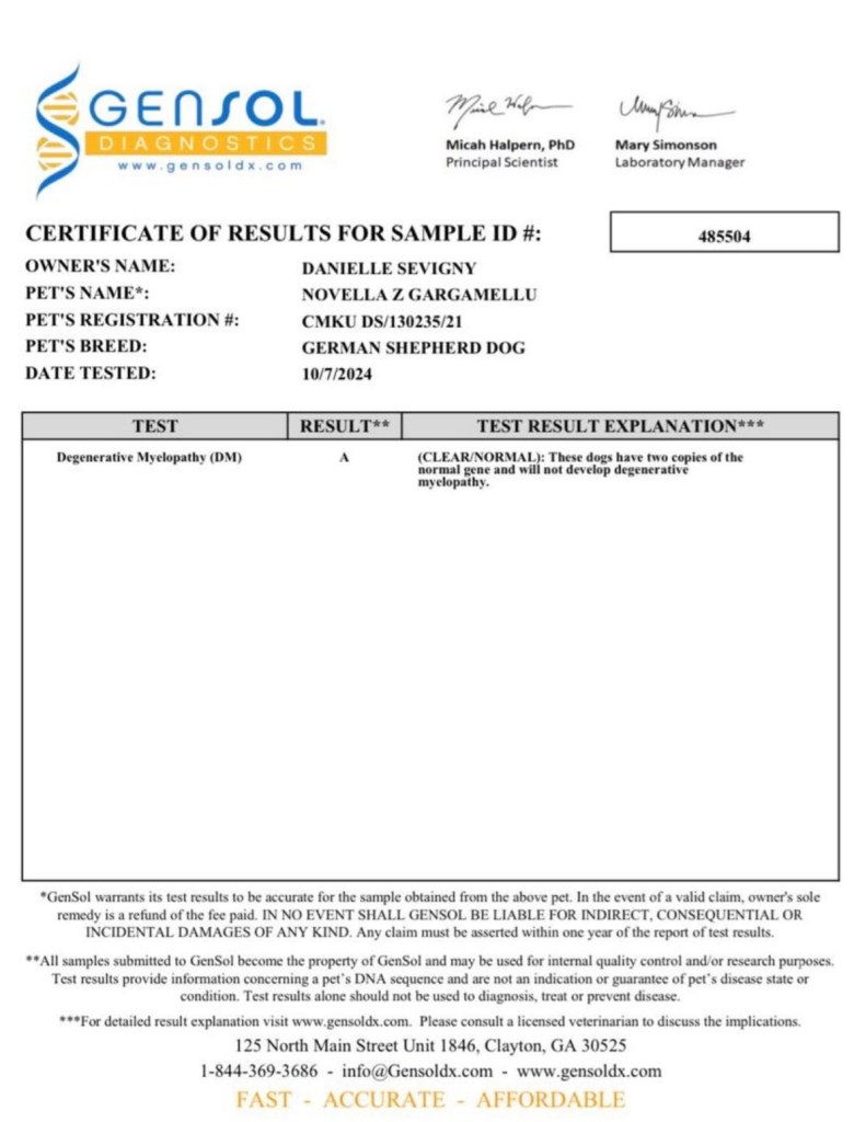 Health testing below: